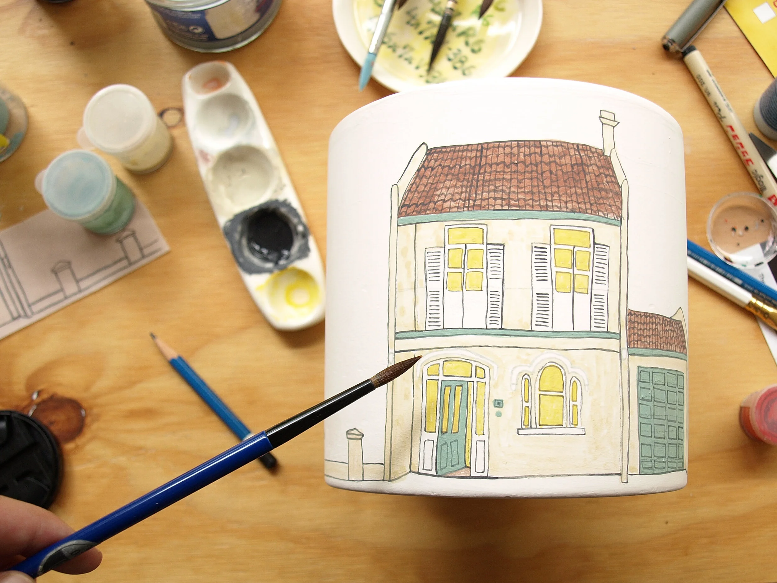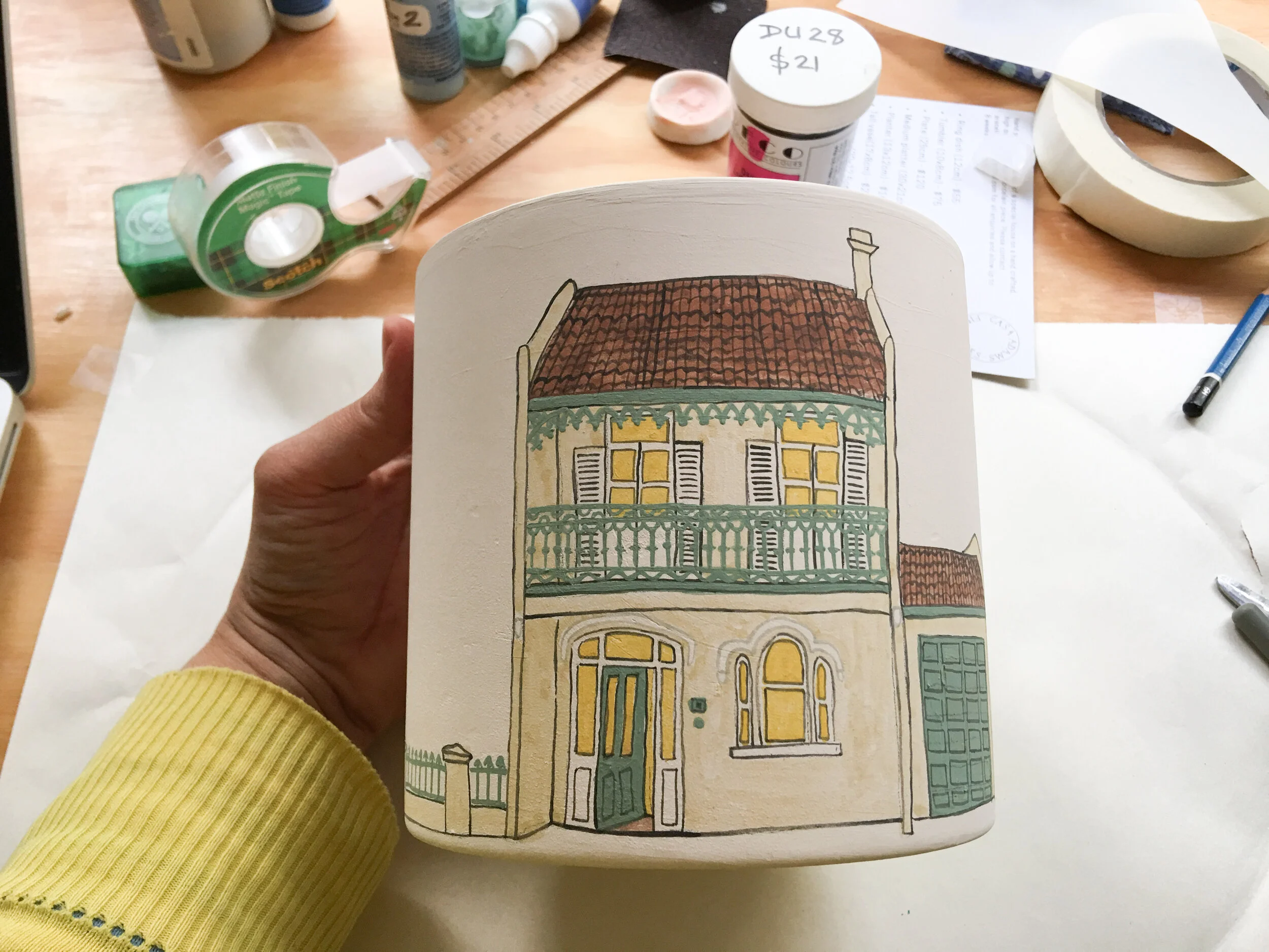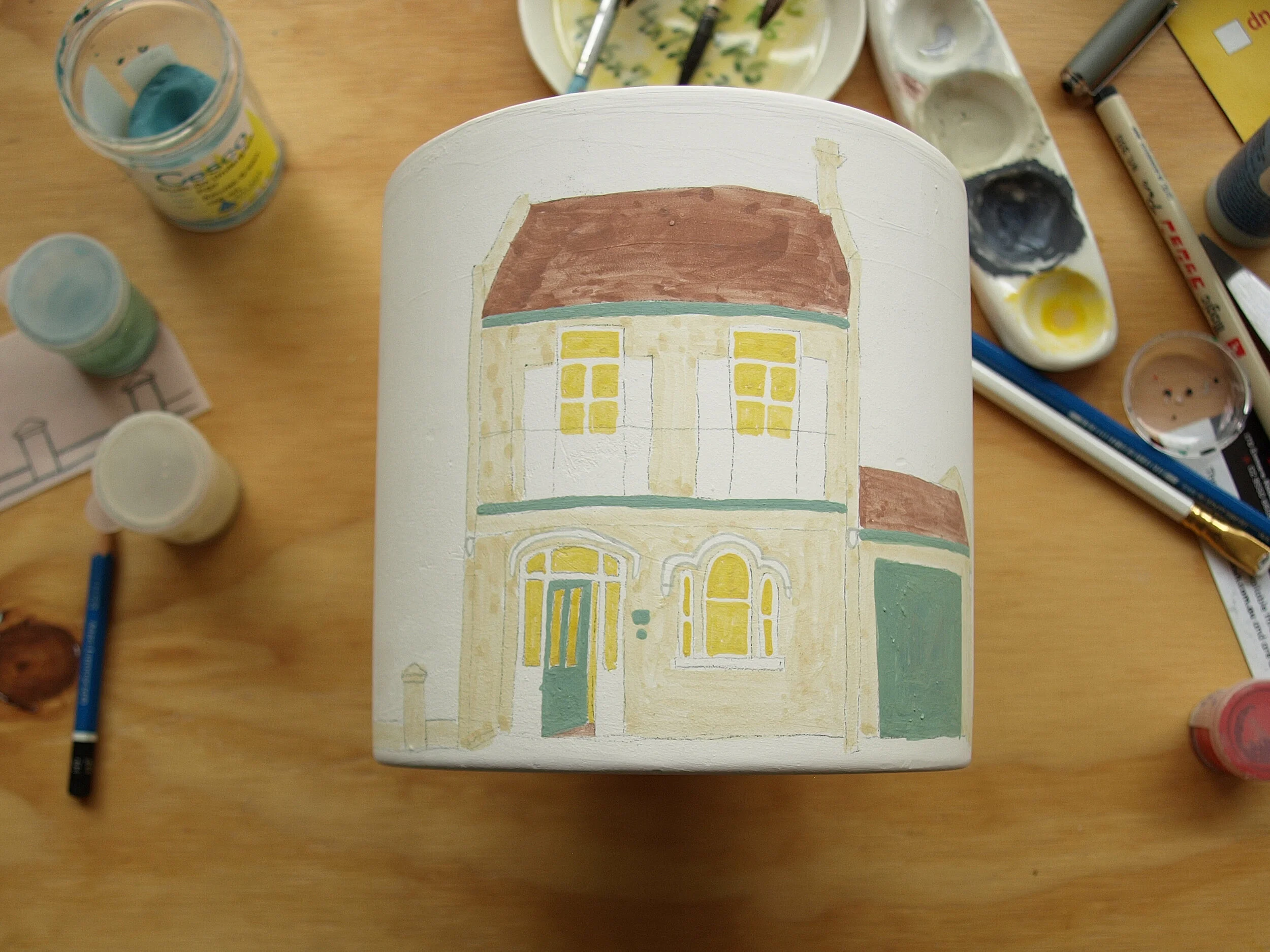 The piece I have identified for this demonstration of my painting process is that of a planter with a terraced house illustration.