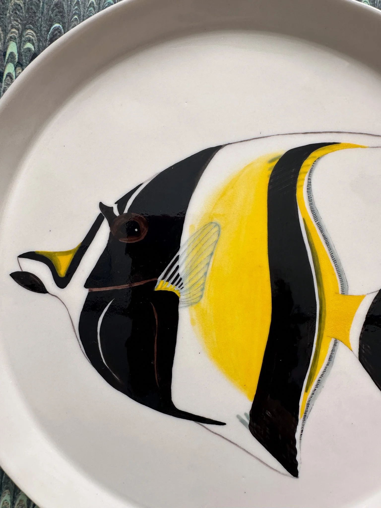 The platter is handmade with Australian porcelain and hand painted with watercolour-like underglazes. As with all handmade objects, it may have some irregularities which contribute to its unique nature. It is fully functional and can we washed in the dishwasher, though I would recommend not putting in the microwave or oven as the abrupt changes in temperature might crack the clay.